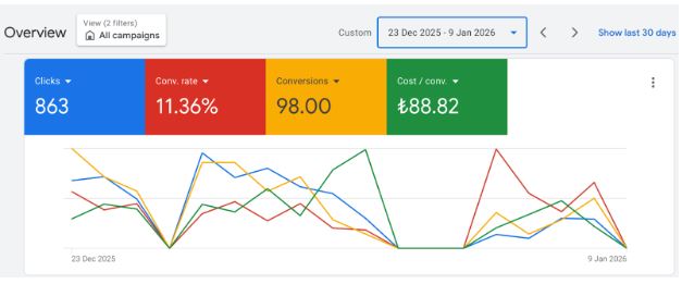 A high volume of clicks does not always translate into meaningful business inquiries. A GCC-based provider specializing in company formation and business setup services approached hdm after its Google Ads campaigns were generating steady traffic but failing to convert users into qualified form submissions. Despite consistent engagement, the account suffered from weak conversion performance, rising acquisition costs, and limited return on ad spend. Inefficient bidding decisions, underperforming keywords, and technical issues within the conversion process were restricting campaign effectiveness. To address these challenges, hdm’s team of specialists implemented a structured, data-driven optimization approach to improve bidding efficiency, strengthen conversion pathways, and restore campaign performance. Key Results Delivered:↑ 35.7%
