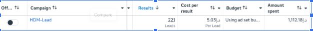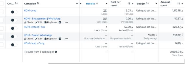 During the Meta campaign period:- 2,000 AED generated 277 leads & WhatsApp chats